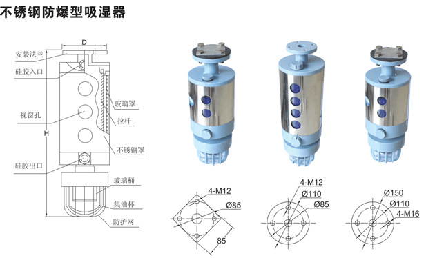 按照連(lian)接法蘭(lan)分:三孔(kong)(圓形)和(he)四孔(方(fang)形)吸濕(shi)器。